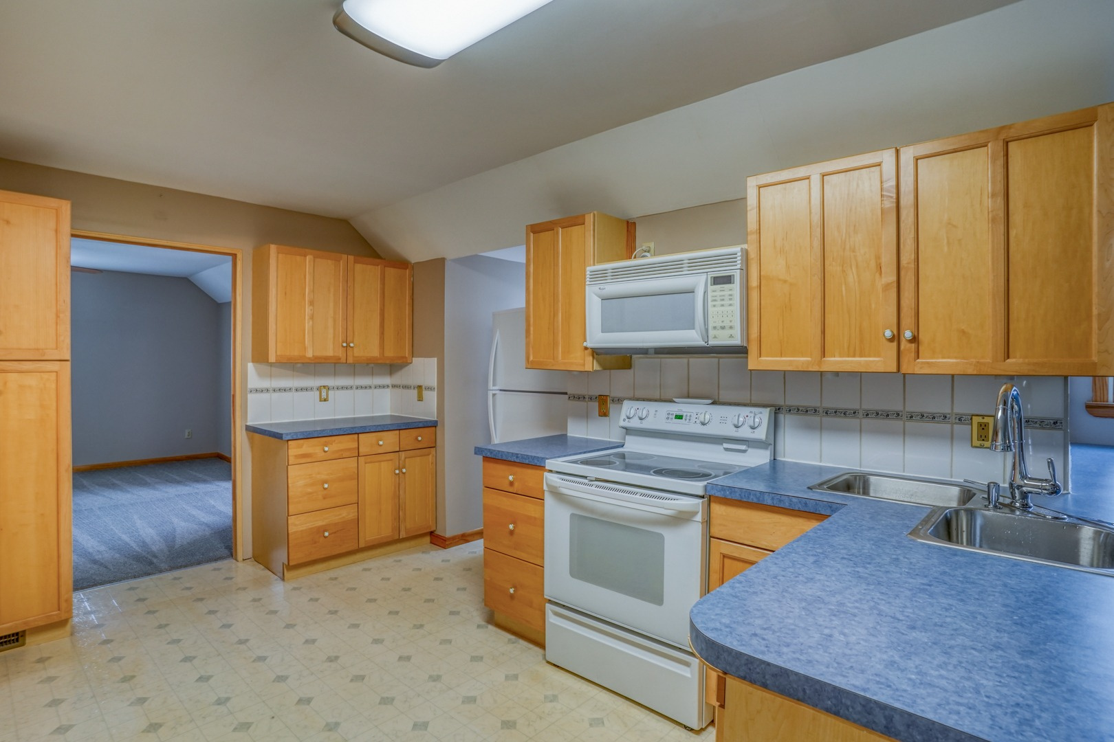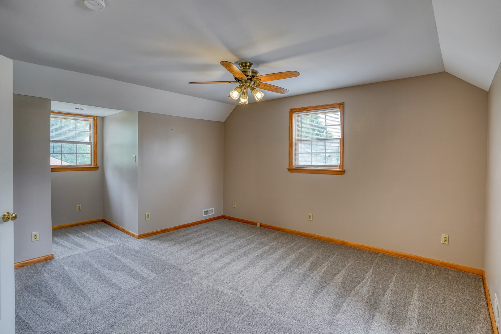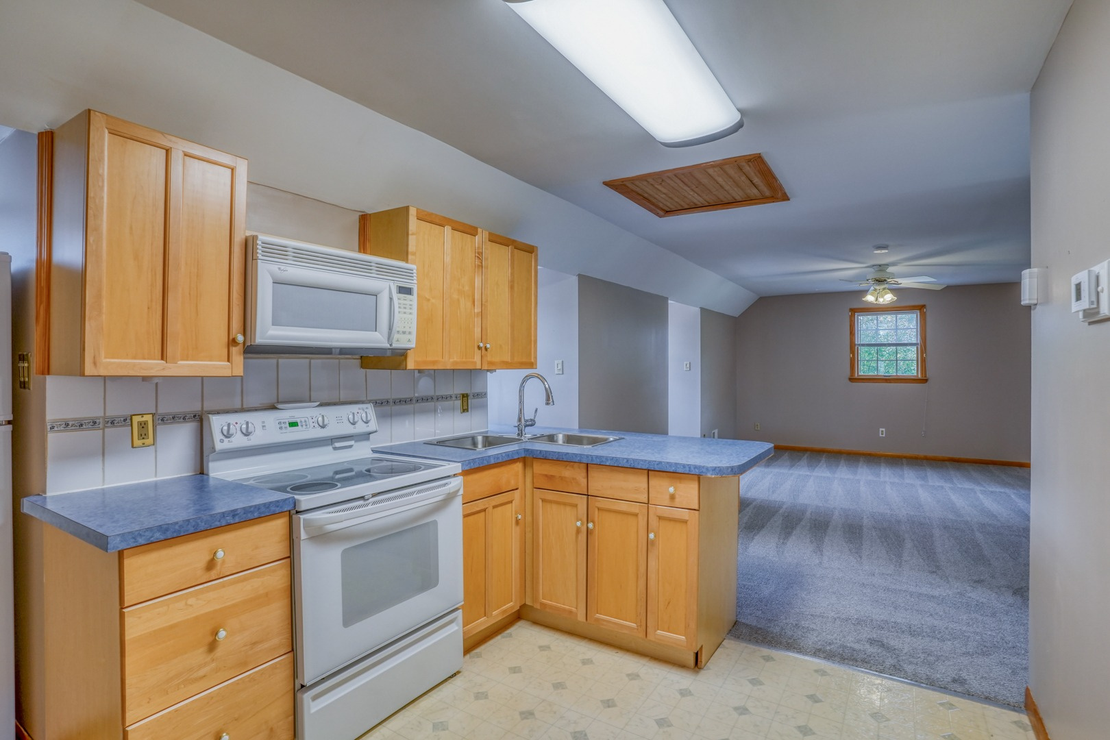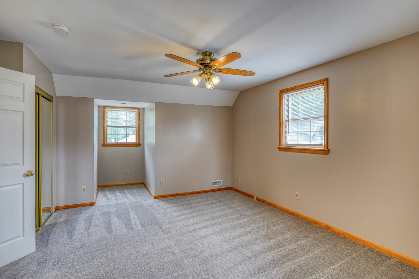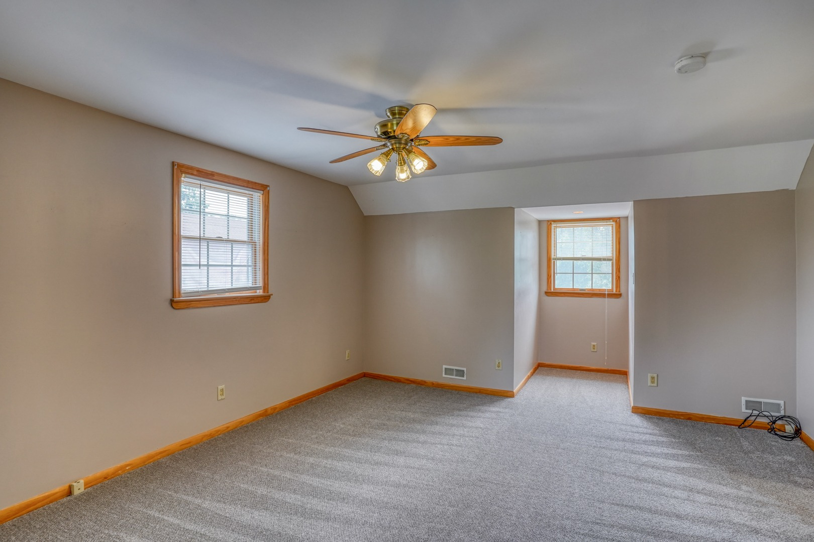 Finally, a guest apartment/in-law suite above the detached garage provides a separate living space with its own entrance, deck, and parking area. This generous apartment offers 1 bedroom, 1 full bathroom, a full kitchen, and a family room. With neutral paint and new carpeting, it is move-in ready and exudes comfort and style.